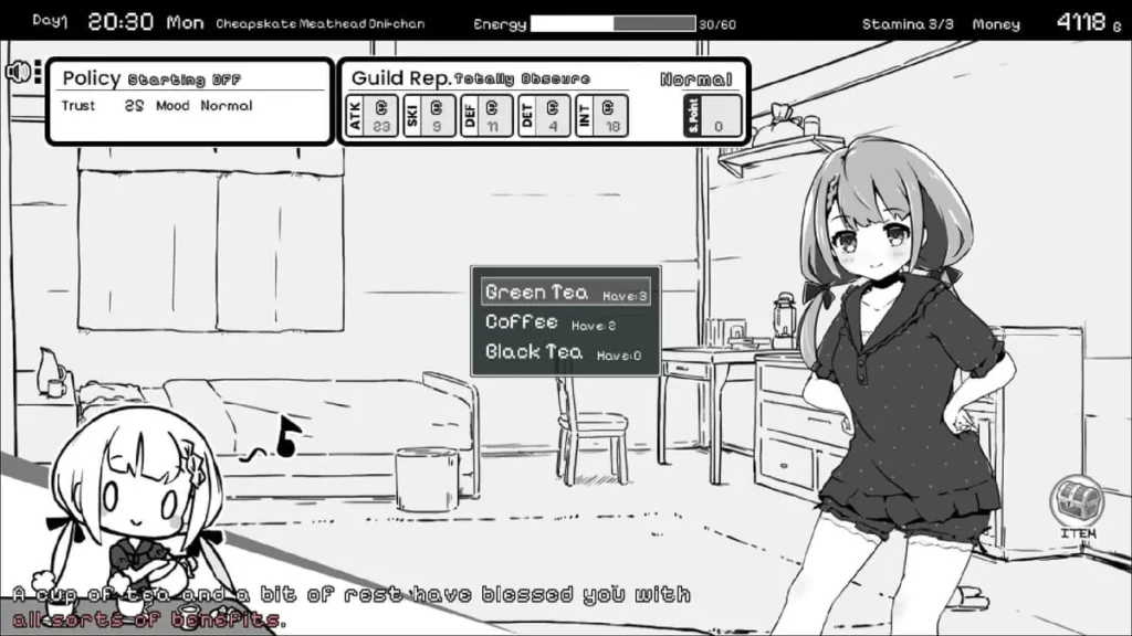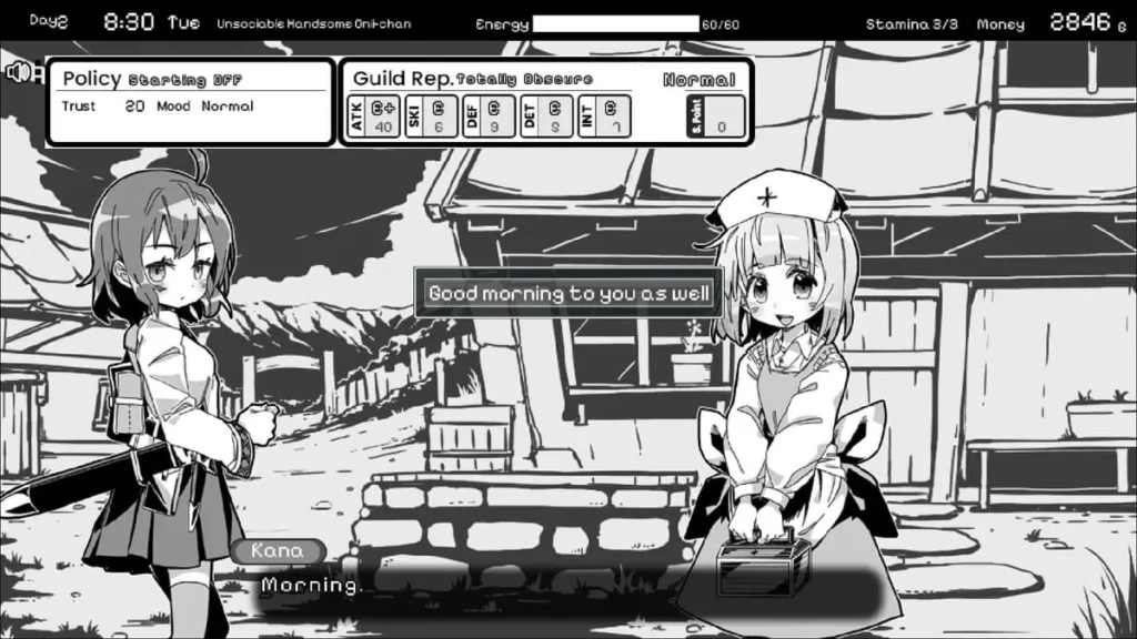 Here’s the golden rule I learned the hard way: Balance is everything. You can’t just be a dungeon-crawling brute ignoring your sister, and you can’t just hover at home without the funds and strength to progress. The plot literally won’t let you. To challenge the Eight and find the cure, you need to be a capable adventurer and a dedicated guardian. This duality is what makes the early game strategy Monochrome Fantasy so crucial. My first failed run? I obsessed over guild battles and came home exhausted every night with nothing left to give, watching her stats stagnate. Don’t be like past me!
